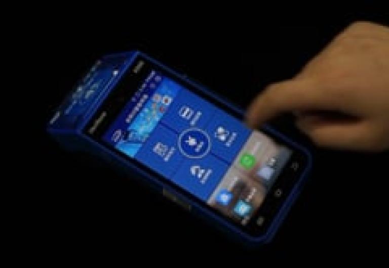 The Verifone X990 is a thin, lightweight, portable payment device.