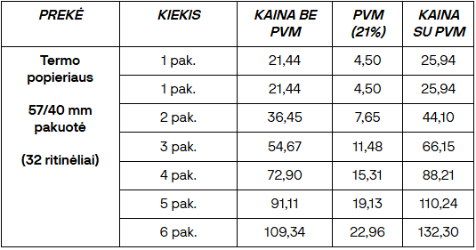 Termopopieriaus pakuotės kaina: